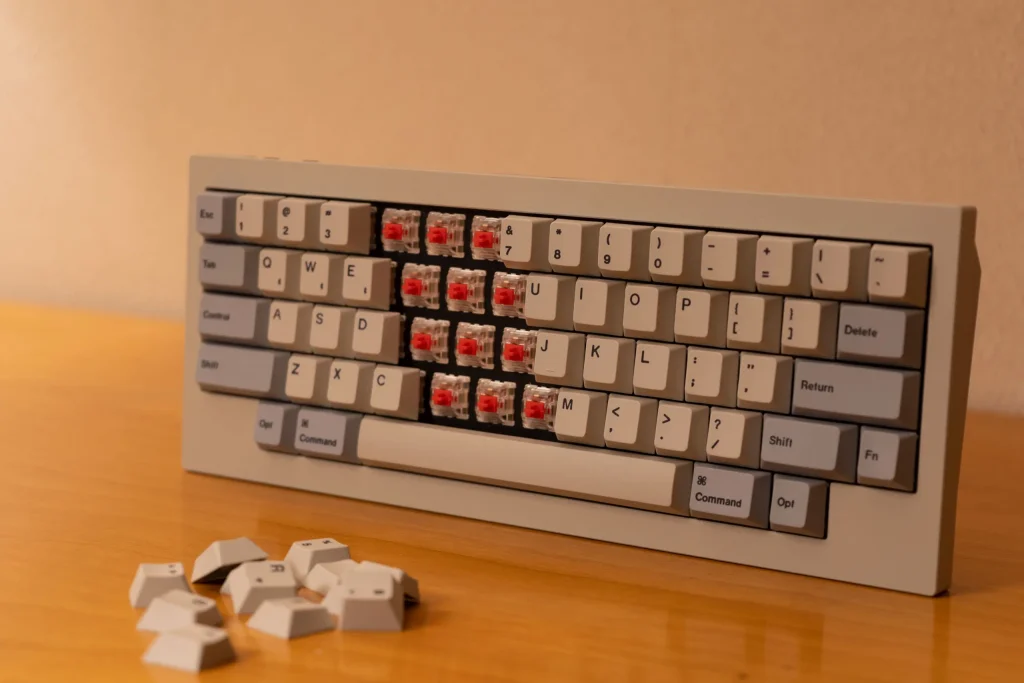 些細な問題かつ携帯性とのトレードオフですが、HHKBは軽くてプラの筐体が高級感に欠けます。